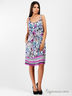 Детали: округлый вырез горловины декорирован ярусными воланами, тонкие бретели, пояс на кулиске со шнурком, два прорезных кармана спереди, яркий цветочный принт.
