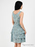 Легкое летнее платье расклешенного силуэта. Выполнено из приятного на ощупь материала. Округлый вырез горловины. Без рукавов. Сбоку застежка на молнию. Талия со шлевками на поясе. Модель украшена многослойными воланами.