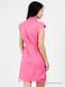 Повседневное платье слегка приталенного силуэта. Выполнено из приятного на ощупь хб материала. Отложной воротник-стойка. Без рукавов. Застежка на пуговицы. Спереди 2 прорезных кармана на пуговице, 2 накладных кармана на клапане и пуговице. Талия на втачном поясе-резинке со шлевками для ремня. По бокам завязки.