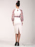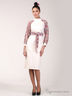 Стильное платье, выполненное из комфортного контрастного материала. Модель с длинными рукавами и фигурным вырезом горловины. Приталенный силуэт подчеркнет фигуру. Застежка на молнию и пуговицу на спине.
