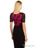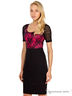 Замечательное платье полуприталенного силуэта. Модель с короткими рукавами и округлым вырезом горловины. Украшено изделие кружевом и вставками контрастного цвета.