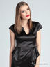 Платье с короткими рукавами и v-образным вырезом горловины. По бокам присутствует эффектная драпировка.