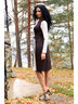 Экстравагантное платье прямого кроя - красивый вариант для создания делового, женственного образа. Изделие с рукавами 3/4, фигурным вырезом горловины. Украшена модель вставками контрастного цвета.