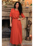 Потрясающее длинное платье украсит гардероб любой женщины, и станет прекрасным нарядом на все случаи жизни. Модель с округлым вырезом горловины и рукавами 3/4. Линию талии подчеркивает пояс в тон изделия. Отличный вариант для Вашего гардероба.