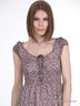 Расклешенное платье с округлым вырезом горловины и коротким рукавом. Талия подчеркнута многорядной резинкой. Принты.