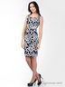 Приталенная модель чуть выше колена. Отрезной пояс. Цветочные принты.