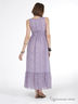 Расклешенное платье на лямках с округлым вырезом горловины. Талия подчеркнута многорядной резинкой. Принты.