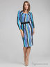 Элегантное платье слегка приталенного кроя. Выполнено из приятного на ощупь материала. Округлый вырез, длинные рукава, талия подчеркнута атласным поясом. Оригинальный принт.