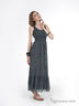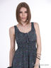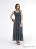 Расклешенное платье на лямках с округлым вырезом горловины. Талия подчеркнута многорядной резинкой. Принты.