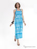Расклешенное летнее платье в пол. Округлый вырез горловины, перекрестные лямки, лиф - многорядная резинка, принты.
