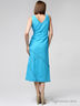 Повседневное летнее платье слегка расклешенного кроя. Выполнено из приятного на ощупь материала. V-образный вырез, отрезной топ, без рукавов, втачной пояс на кулиске. Изделие украшено рюшами и кружевными вставками.
