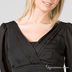 Вырез горловины V-образный с запахом, рукав свободный 1/2, платье отрезное по линии талии, юбка по поясу присборена.