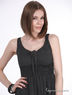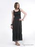 Расклешенное платье на лямках с округлым вырезом горловины. Талия подчеркнута многорядной резинкой. Принты.