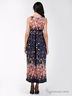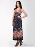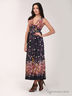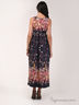 Расклешенная модель с V-образным вырезом горловины. Отрезной лиф. Изделие украшено принтами.