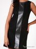 Платье-сарафан выполнено из трикотажного полотна, украшенного серебряным напылением. Имеет вырез горловины формой лодочка и декоративную прямоугольную вставку по переду.