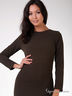 Классическое элегантное платье из приятного на ощупь материала. Круглая горловина. Длинные рукава. Приталенный чувственный силуэт. Застегивается на спине на невидимую молнию. Сзади небольшой разрез.