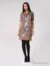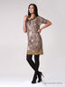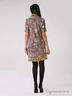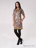 Оригинальное повседневное платье с необычным принтом. Округлый воротник стойка, короткие рукава, спереди присборено.