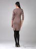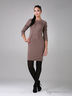 Трикотажное платье приталенного покроя универсального кофейного цвета. Круглая горловина. Длинные рукава. На спинке вырез-капелька. Небольшой разрез сзади.