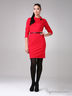 Приталенное трикотажное платье стильного ярко-красного цвета. Оригинальный воротник с крупной пуговицей. Длинные рукава. Сзади небольшой разрез. Благодаря подкройным вытачкам прекрасно сидит на фигуре.