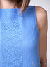 Элегантное летнее платье слегка приталенного кроя. Выполнено из приятного на ощупь материала. Округлый вырез, без рукавов, спереди украшено кружевной вертикальной вставкой. Сзади застегивается на молнию, снизу шлица.