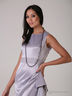 Элегантное атласное платье. Округлый вырез, без рукавов, на талии втачной пояс из ажурного кружева, сбоку застегивается на молнию. Оригинальный крой.