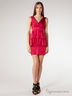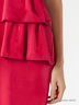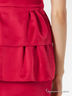V-образный вырез с запахом. Втачной пояс. Завышенная талия с крупными оборками. Короткая юбка прямого покроя.