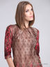 Элегантное платье слегка приталенного кроя. Выполнено из приятного на ощупь материала. Округлый вырез с вытачками, рукава 3/4 с разрезами. Сзади застегивается на пуговицу, снизу шлица. Оригинальный принт.