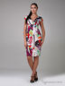 Приталенное платье с ярким принтом. V-образный вырез с запахом. Заниженные проймы. Втачной пояс под грудью.