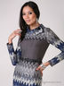 Классическое платье с оригинальным рисунком. Отложной воротник стойка на пуговице, длинные рукава, талия подчеркнута гладким регулируемым ремнем.