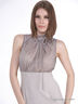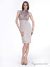 Стильное платье приталенного силуэта. Небольшой ворот-стойка, отрезной полупрозрачный лиф. Скрытая застежка на молнию на спинке.