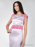 Стильное платье приталенного покроя. Округлый вырез горловины. Короткий рукав. Застегивается на молнию на спинке. Короткие рукава с тканевыми цветами. Фигурные вытачки. Линия талии подчеркнута тканевыми цветами.