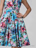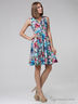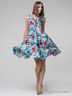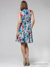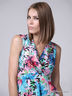 Яркое летнее платье расклешенного кроя. Выполнено из приятного на ощупь материала. V-образный вырез с запахом, без рукавов, втачной пояс. Сзади застегивается на молнию, оригинальный цветочный принт.