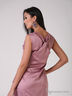 Элегантное атласное платье. Округлый вырез, без рукавов, на талии втачной пояс из ажурного кружева, сбоку застегивается на молнию. Оригинальный крой.