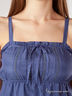 Слегка расклешенное, длина до середины голени. Отрезной лиф с тонкими бретельками. Верх лифа посажен на кулиску. Декорировано защипами.