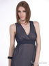 Стильное платье с завышенной линией талии. V-образный вырез горловины с запахом. Отрезной пояс.