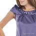 Платье прилегающего кроя из атласной ткани. Широкий отрезной ворот украшен пайетками. Под воротником декоративные складки. Короткие рукава присборены. Застегивается на незаметную молнию.
