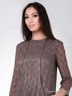 Необычное платье прямого покроя. Скрытая застежка на молнию на спинке. Длинный полупрозрачный кружевной рукав. Атласный подклад. Верхний слой полупрозрачный кружевной.