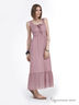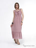 Расклешенное платье на лямках с округлым вырезом горловины. Талия подчеркнута многорядной резинкой. Принты.