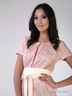 Приталенное платье с оригинальным принтом. Круглый вырез с декоративными складками. С контрастным белым поясом. Элегантное платье идеально подойдет для торжественных случаев.