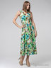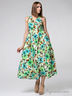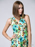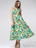 Легкое летнее удлиненное платье расклешенного кроя. Выполнено из приятного на ощупь материала. V-образный вырез, без рукавов, широкий втачной пояс. Сзади застегивается на молнию, яркий цветочный принт.