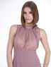 Стильное платье приталенного силуэта. Небольшой ворот-стойка, отрезной полупрозрачный лиф. Скрытая застежка на молнию на спинке.