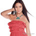 Модель расклешена от линии талии. Лиф украшен декоративными оборками. Завязки на спинке.