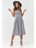 Особенности: Платье приталенного силуэта из хлопковой ткани. Детали: отрезной лиф со складками по переду и широкими бретелями, перекрещивающиеся на спине, широкий притачной пояс, защипы по юбке, боковые карманы. Застежка на пуговицу по спинке.