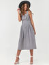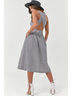 Особенности: Платье приталенного силуэта из хлопковой ткани. Детали: отрезной лиф со складками по переду и широкими бретелями, перекрещивающиеся на спине, широкий притачной пояс, защипы по юбке, боковые карманы. Застежка на пуговицу по спинке.