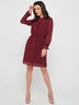 Платье из шифона плюмети на подкладке. Детали: Горловина округлой формы, втачной рукав со сборкой по низу. Платье отрезное по талии со сборкой на резинку.