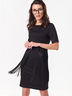 Платье из плотного трикотажа с декоративной бахромой. Детали? горловина округлой формы, обработана окантовкой, втачной короткий рукав, накладные карманы (по верхнему краю настрочена тесьма с бахромой).
