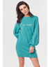 • Особенности: Платье из меланжевого трикотажа-футера. Детали: горловина округлой формы, объемный рукав со складками по низу, манжеты по низу рукавов и платья. По переду нанесен принт серебристой фольгой.