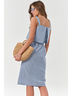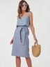 • Особенности: Платье прямого силуэта из хлопковой ткани. Детали: широкие бретели, отлетная кокетка, пояс из основной ткани в комплекте. Застежка на молнию в среднем шве спинки.