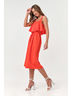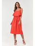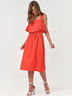 Особенности: Платье полуприлегающего силуэта из плательной ткани. Детали: отлетная кокетка верха, широкие бретели, сбока по талии на резинку, съемный пояс с пряжкой в комплекте.