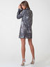 Платье-жакет прямого силуэта из фактурной ткани с напылением на подкладке. Детали: смещенная застежка, шалевый воротник, длинный втачной рукав.
